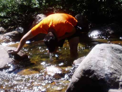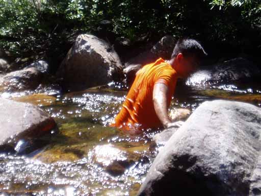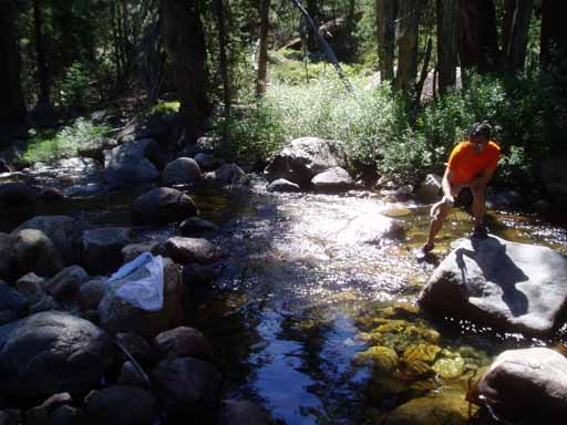 Pedro attempting to wash in cold Granite Creek.
