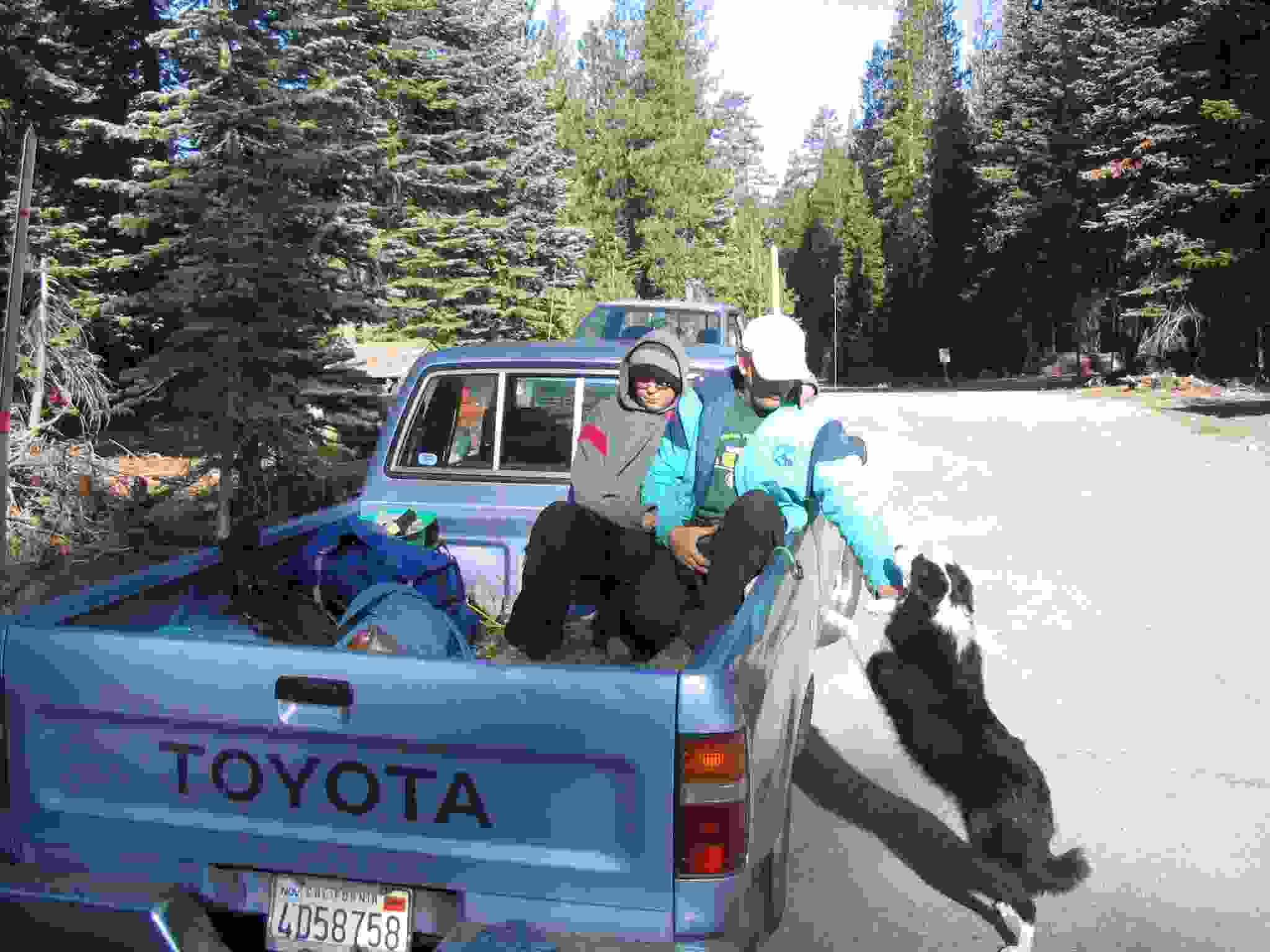 Ken, Keith and Rob-dog in the back of Eric's truck on the way to work.