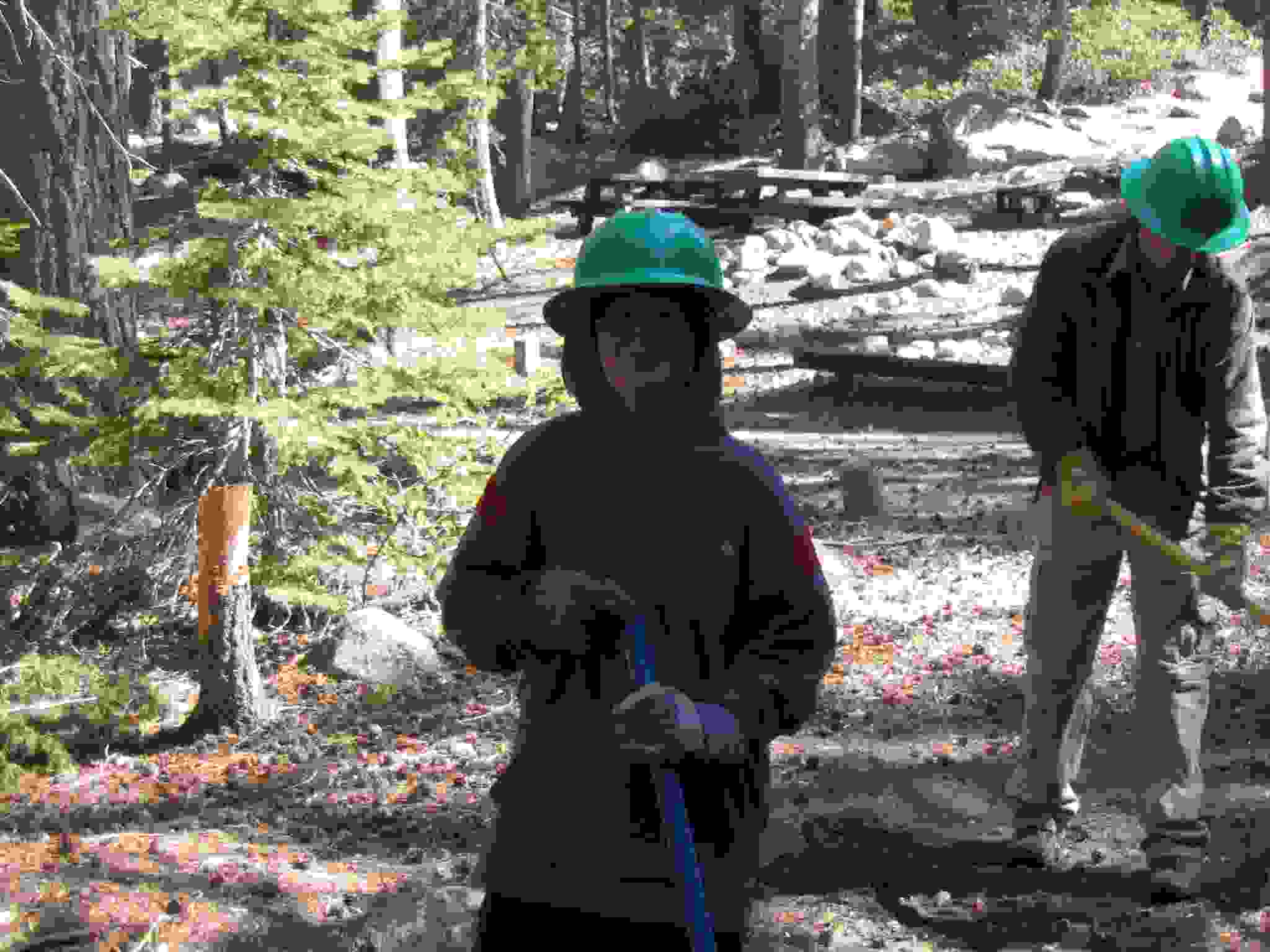 Keith using a McLeod to get a bear box position ready.