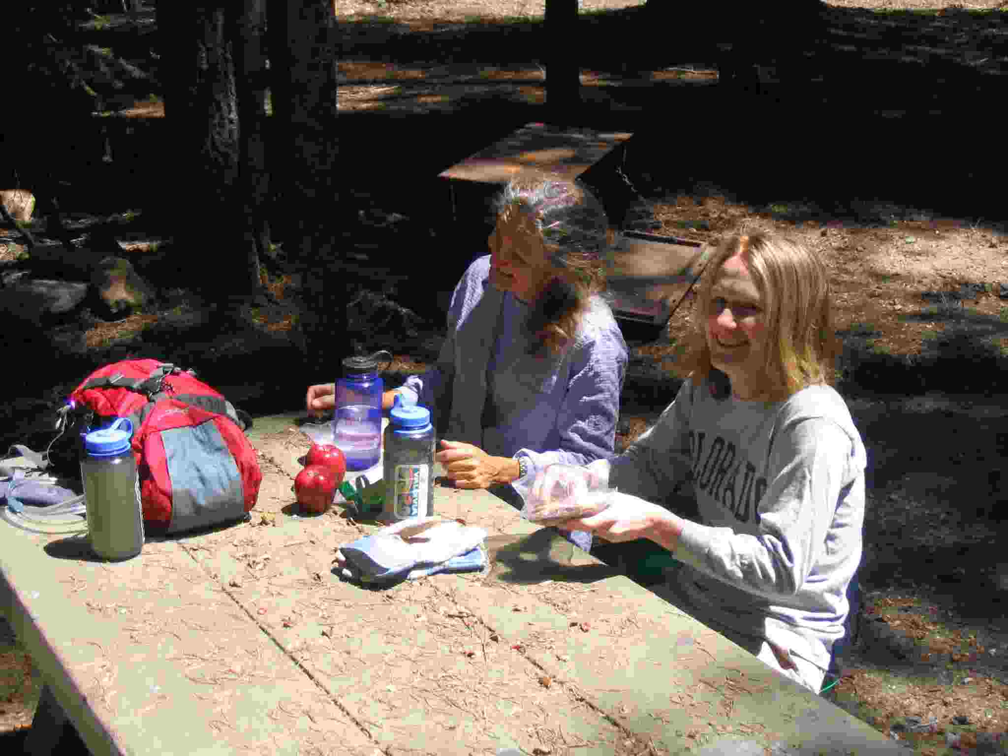 Cathern and Lisa eating lunch.