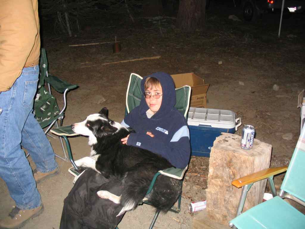 Rob-dog and Ken back in camp near fire.