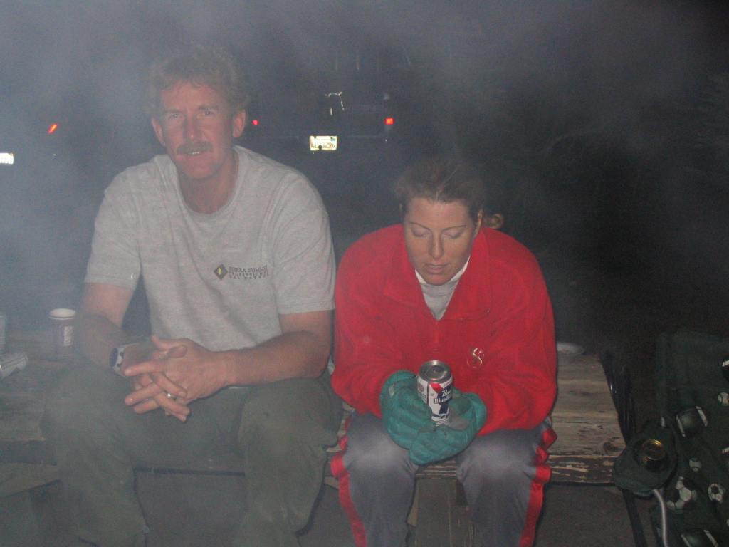 Phil and Sherri near fire. It was cold up there. It got down to 22° F at night.