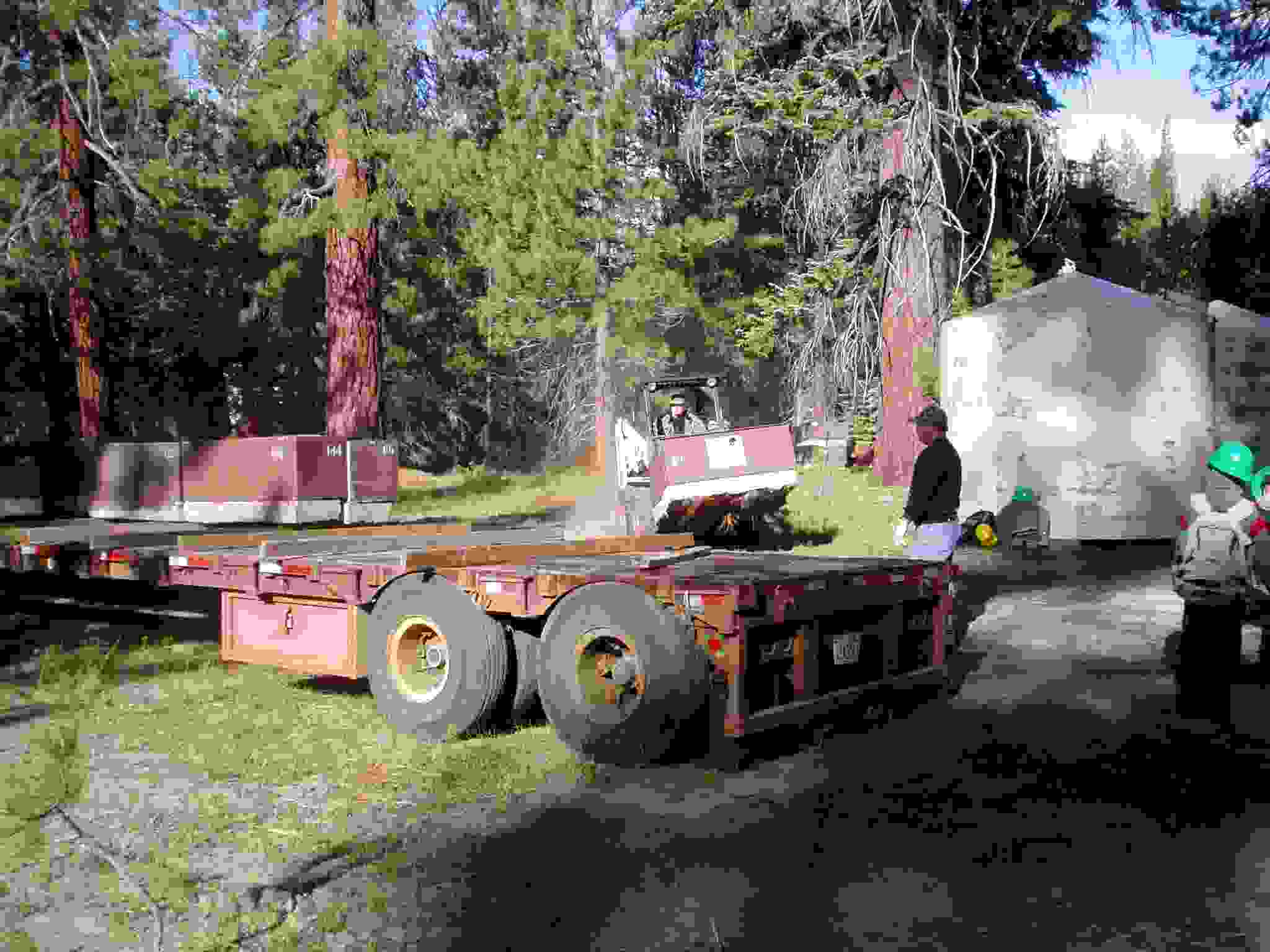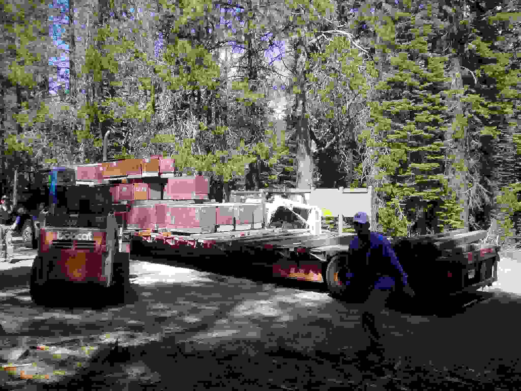 Unloading bear boxes at the camp area.
