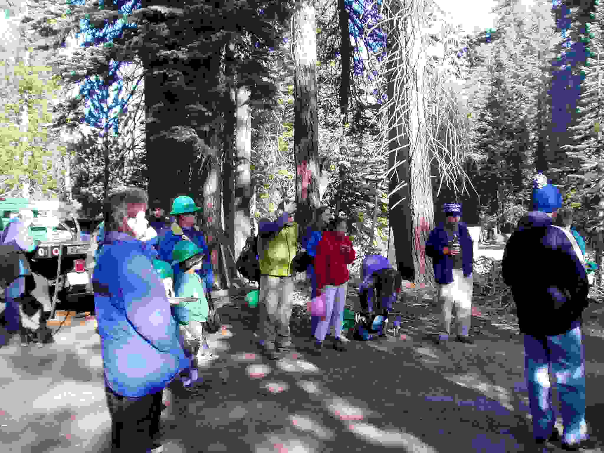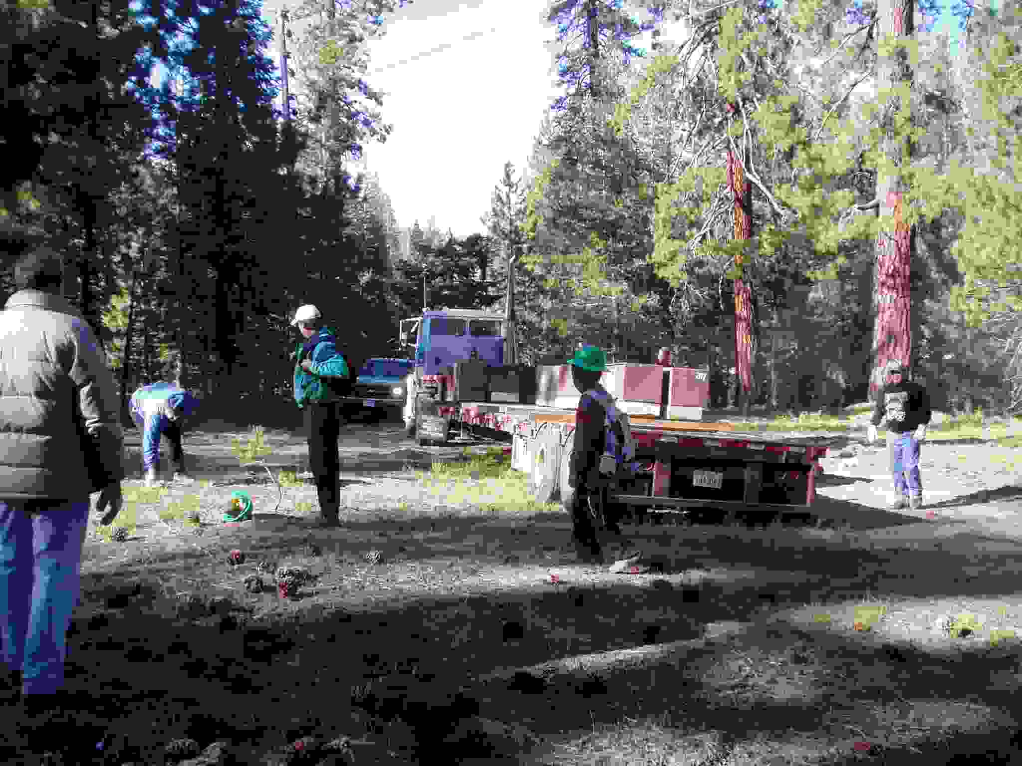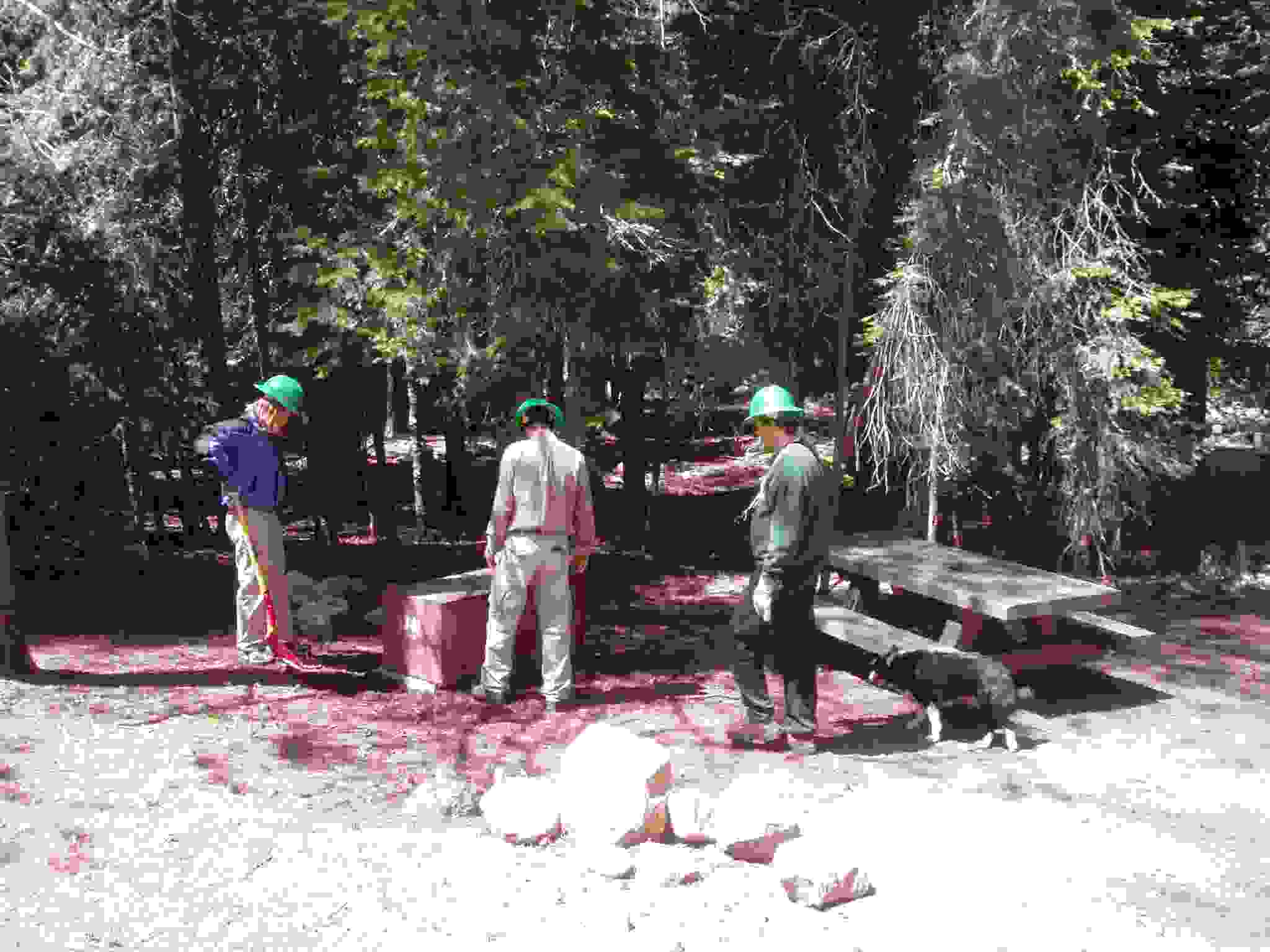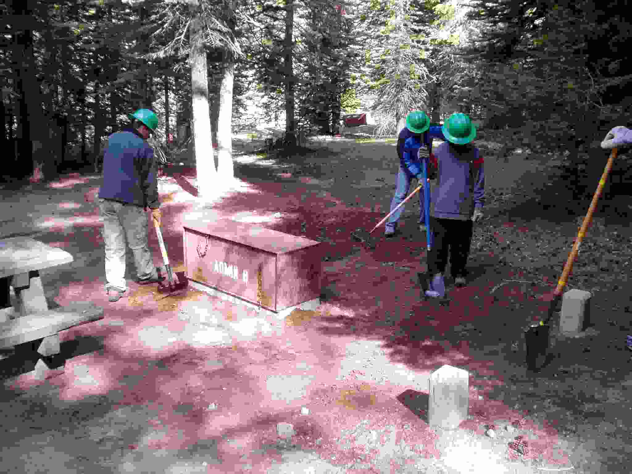 Team cleaning up after setting a bear box in position.