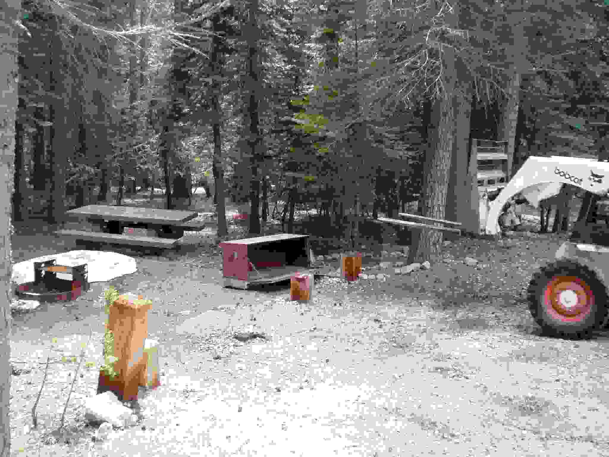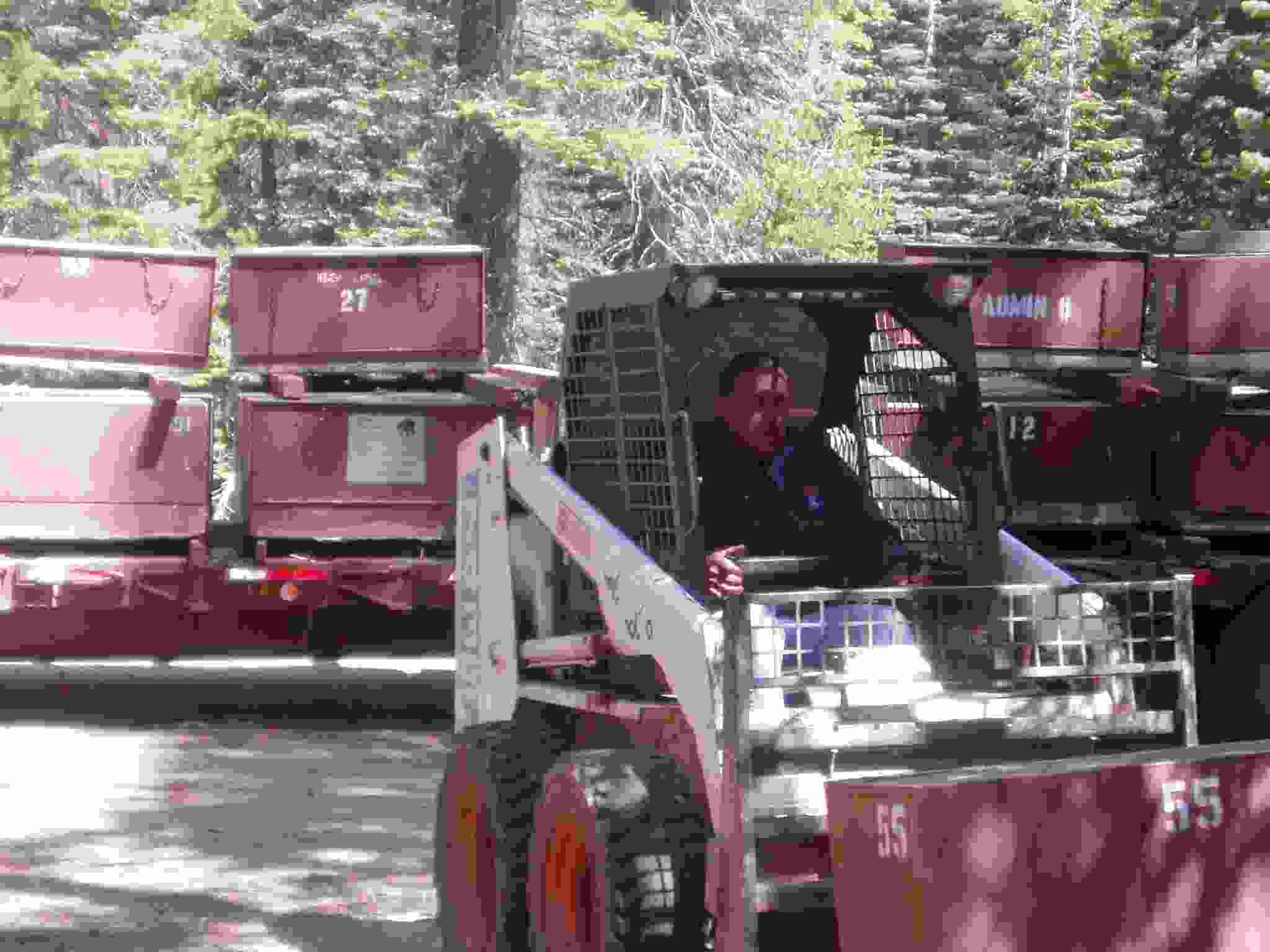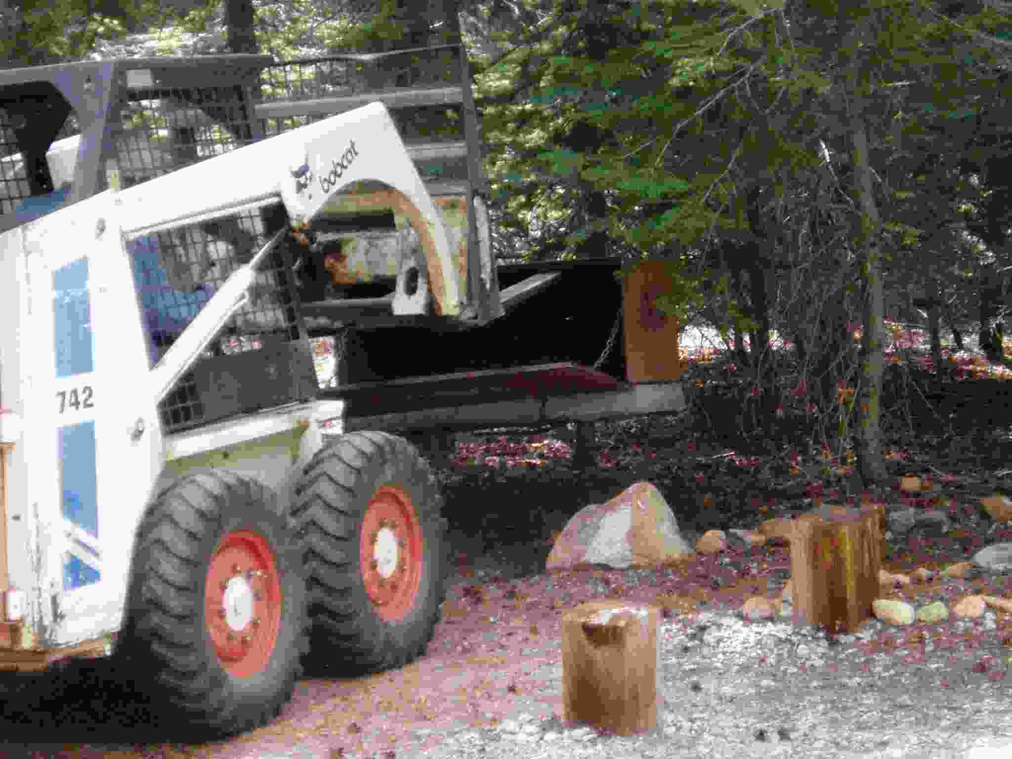 Bobcat grabbing a bear box for placement.