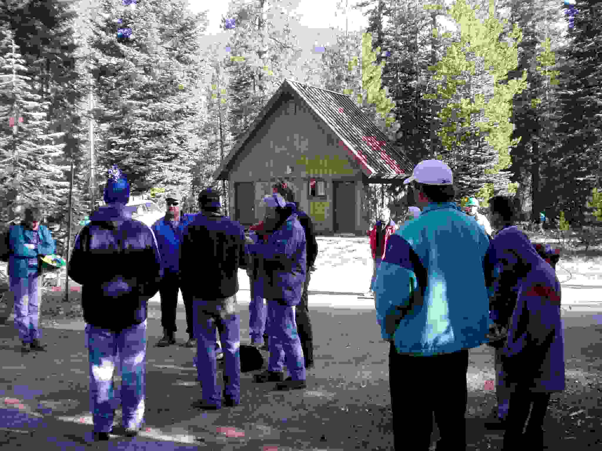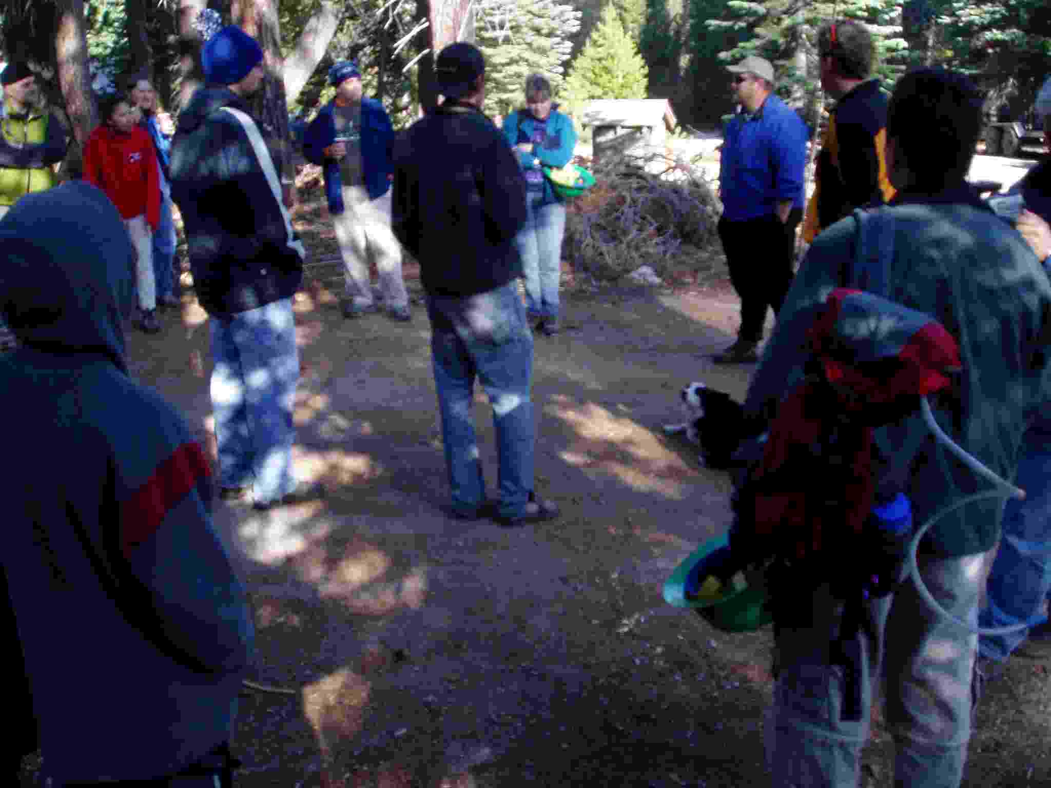 Linda and others around the morning fire.