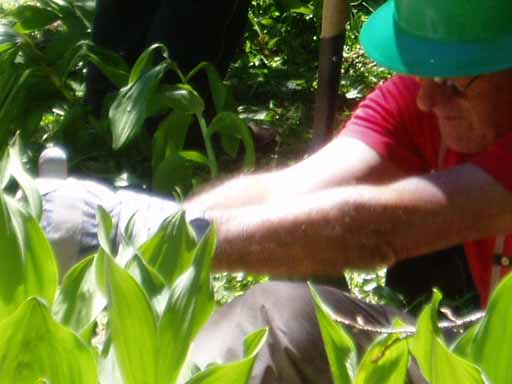 Bill and Pedro moving on to the next tree after cutting the old tree out.