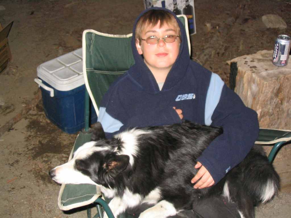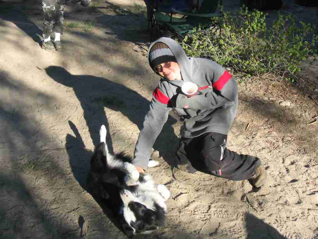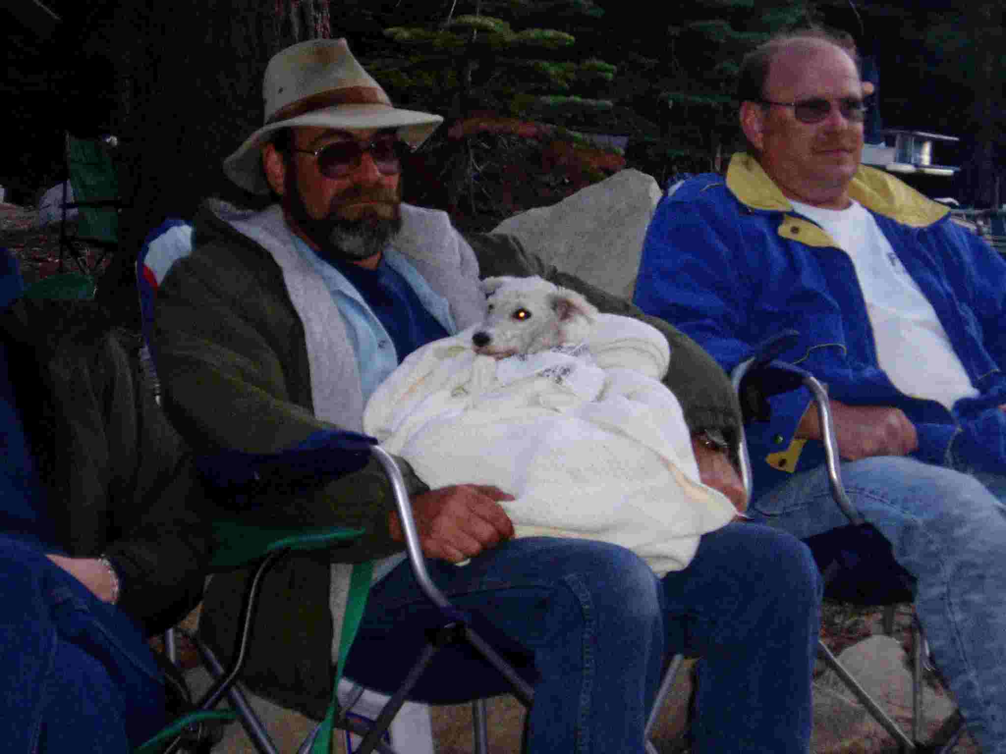 Rob-dog and Ken back in camp near fire.