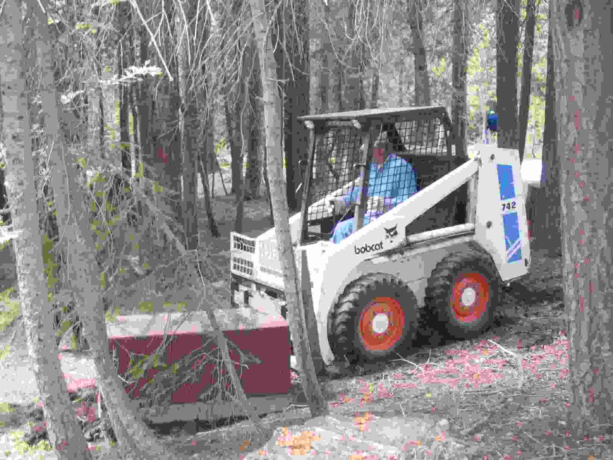 Bobcat doing final movements for the bear box.