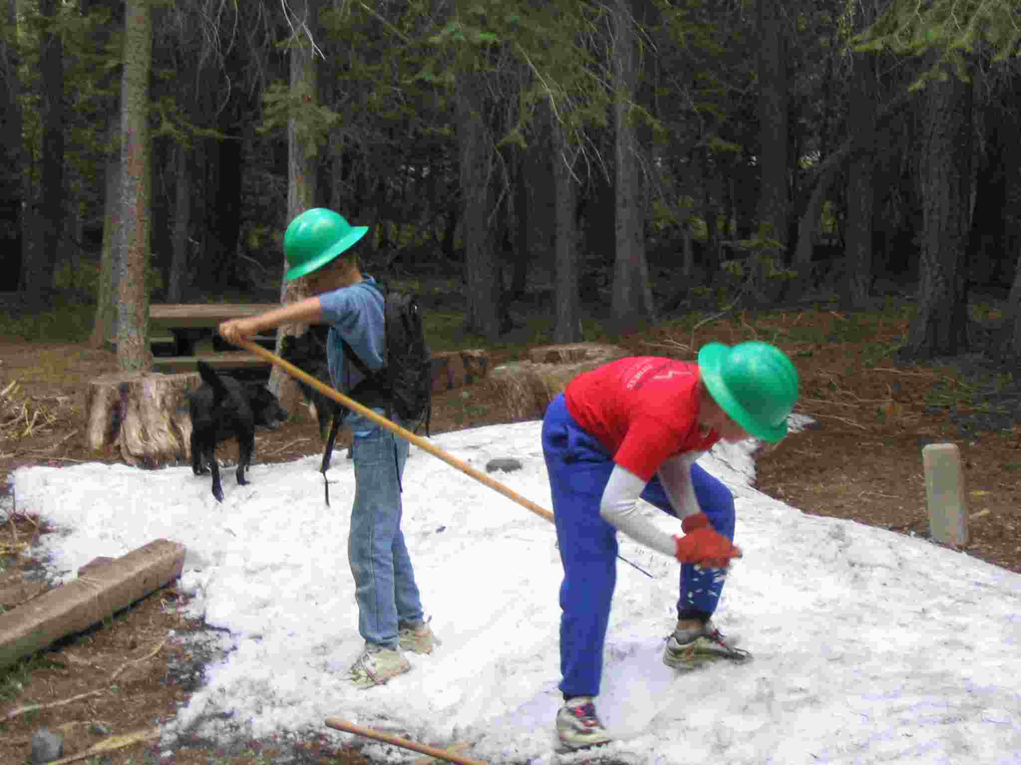 Bear box installed, Lisa and ? checking its placement.