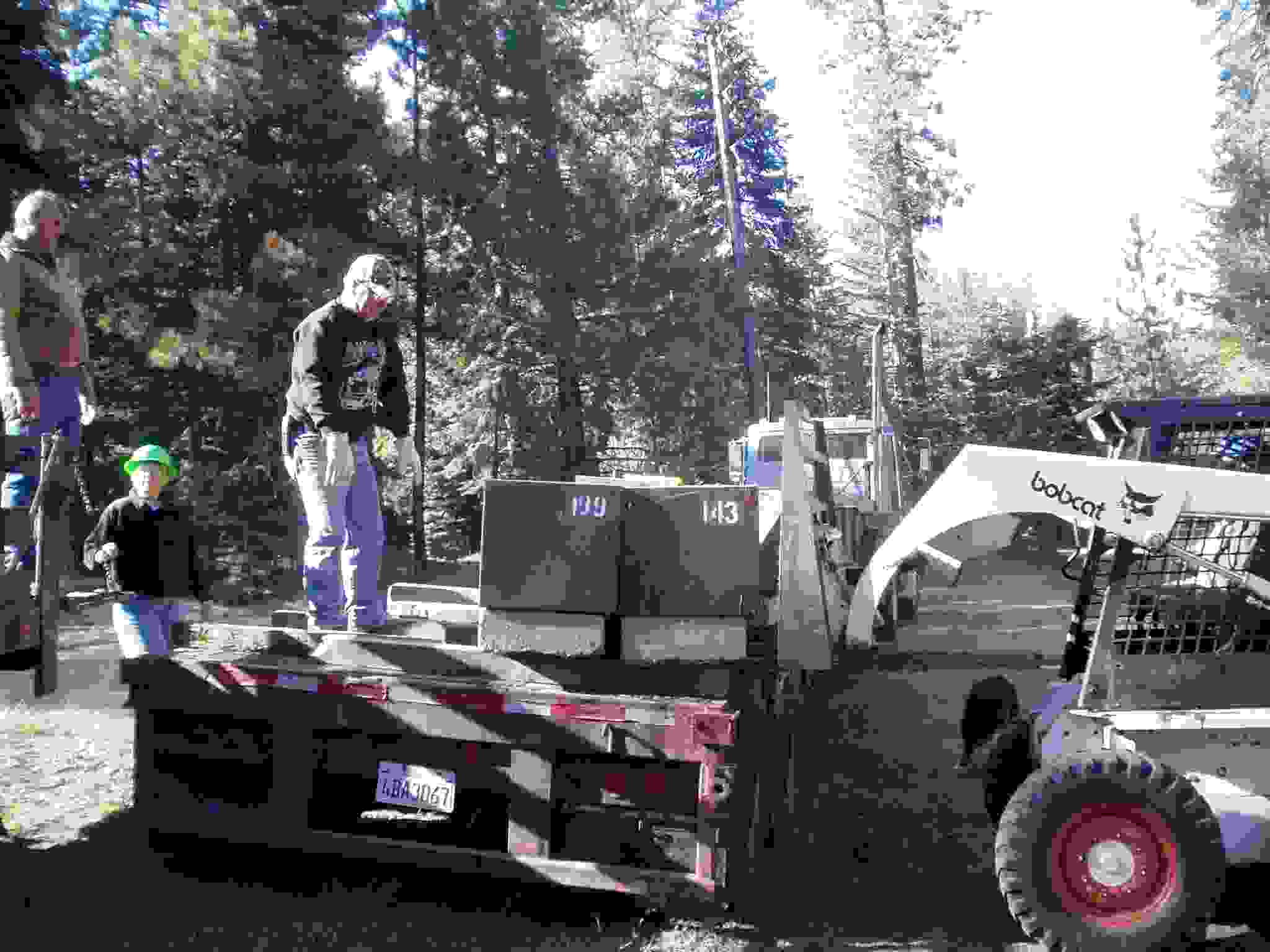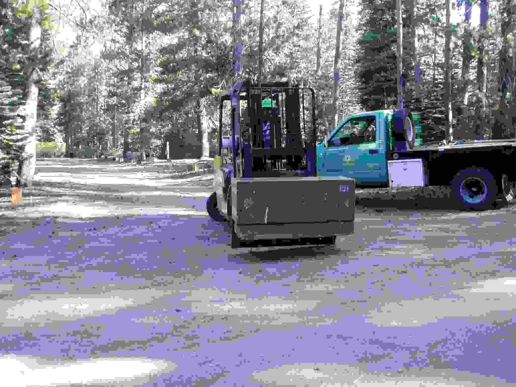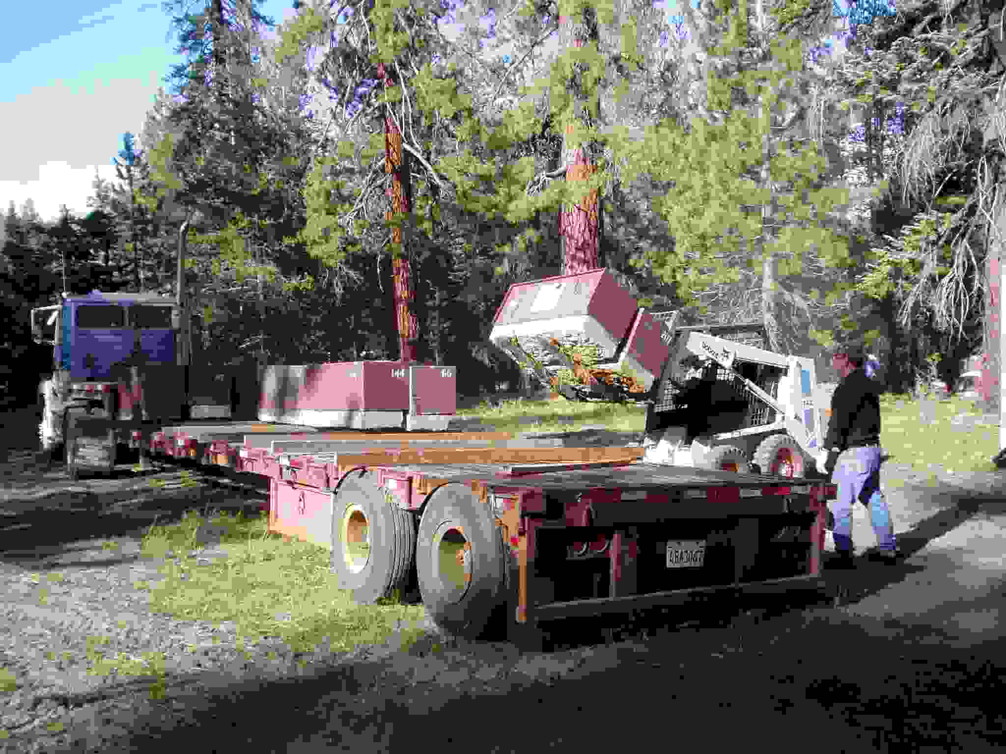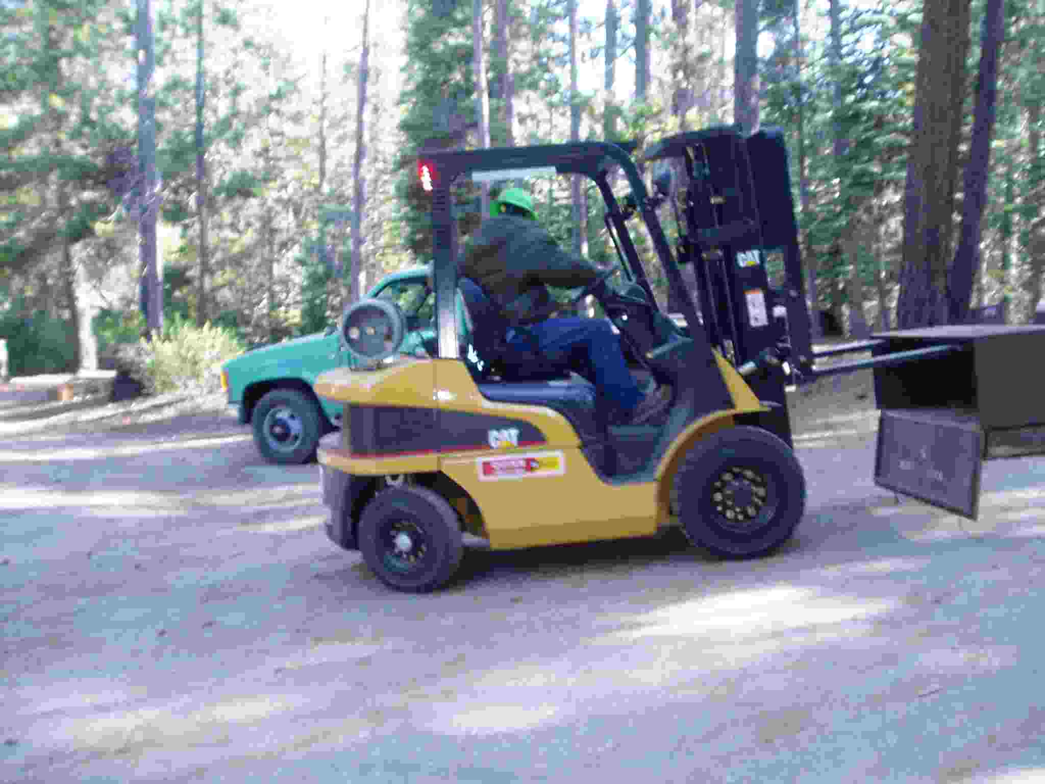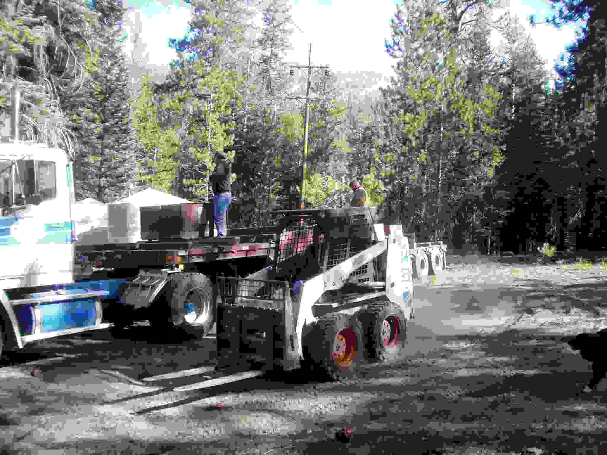 Bobcat grabbing a bear box for placement.