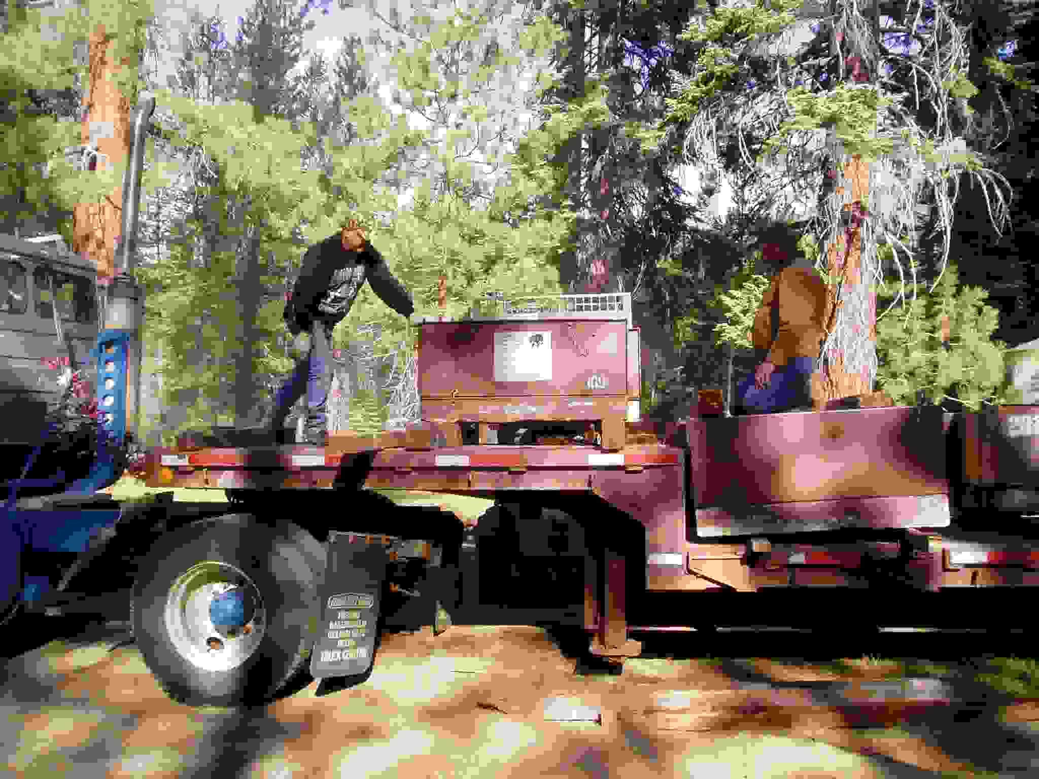 Ken, Keith and Rob-dog in the back of Eric's truck on the way to work.