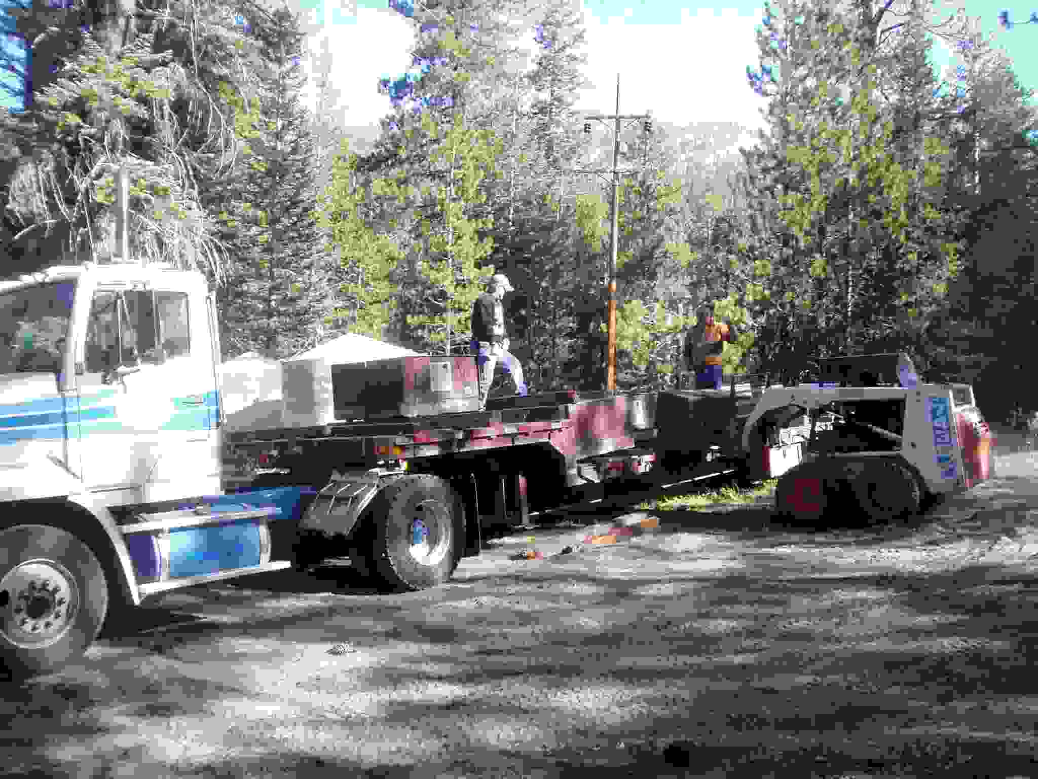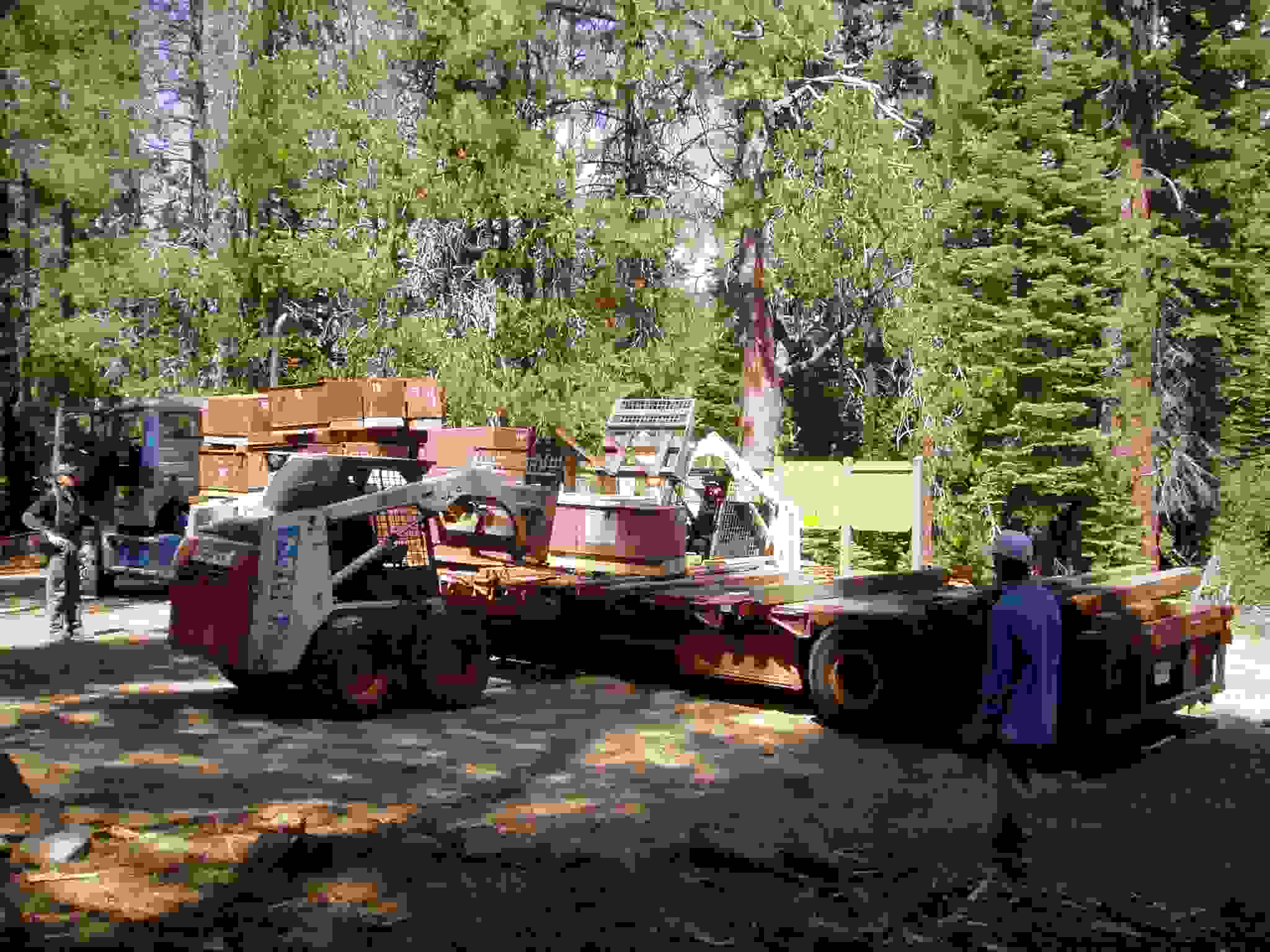 Unloading bear boxes at the camp area.