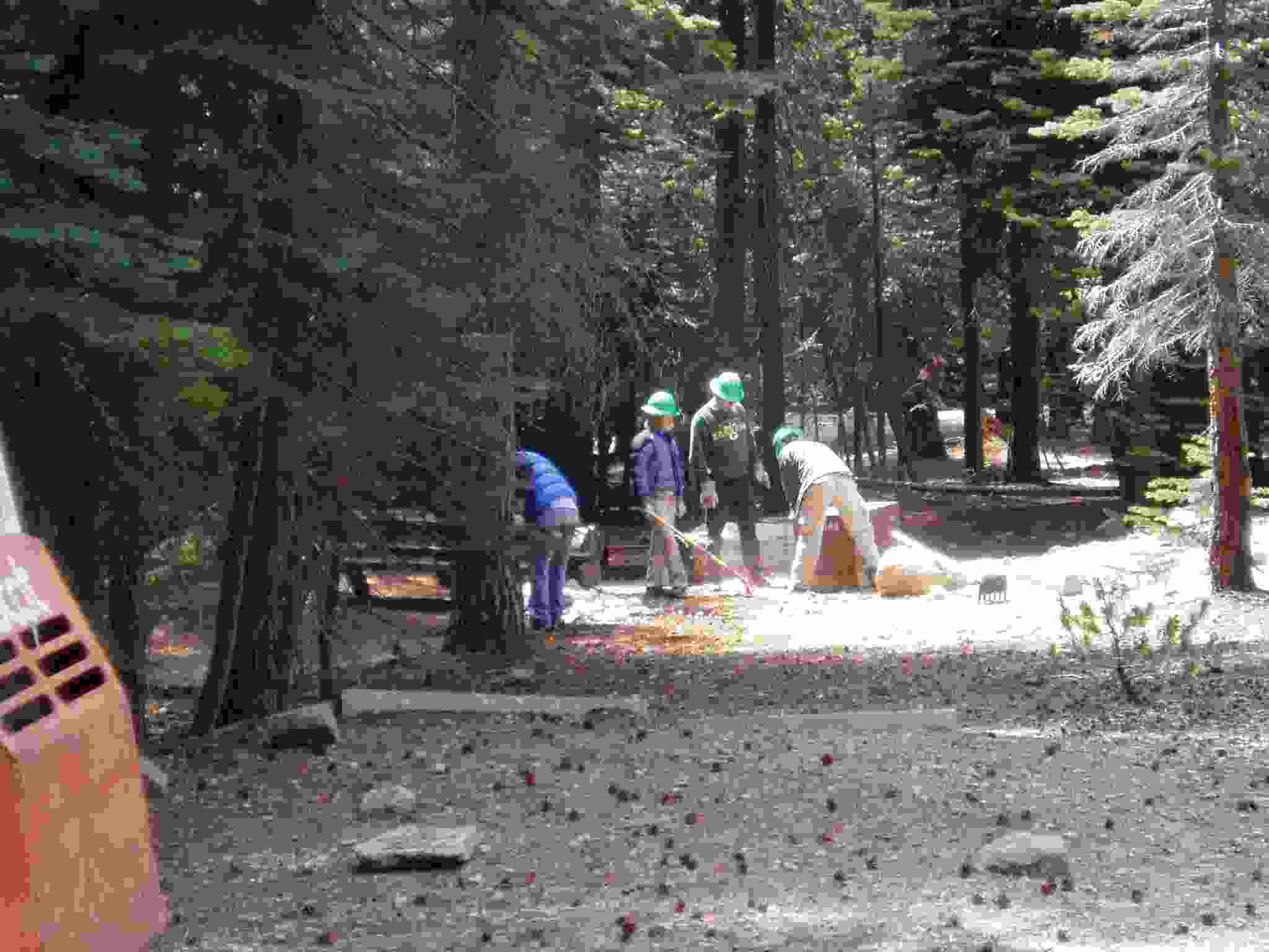 Team cleaning up after setting a bear box in position.