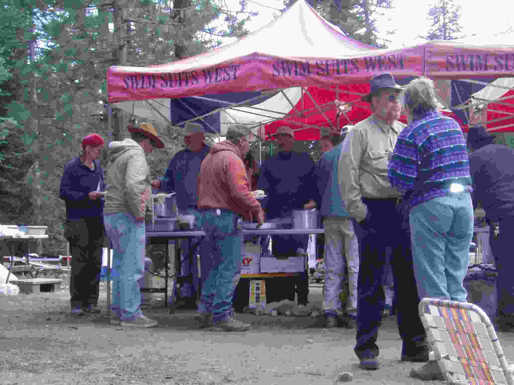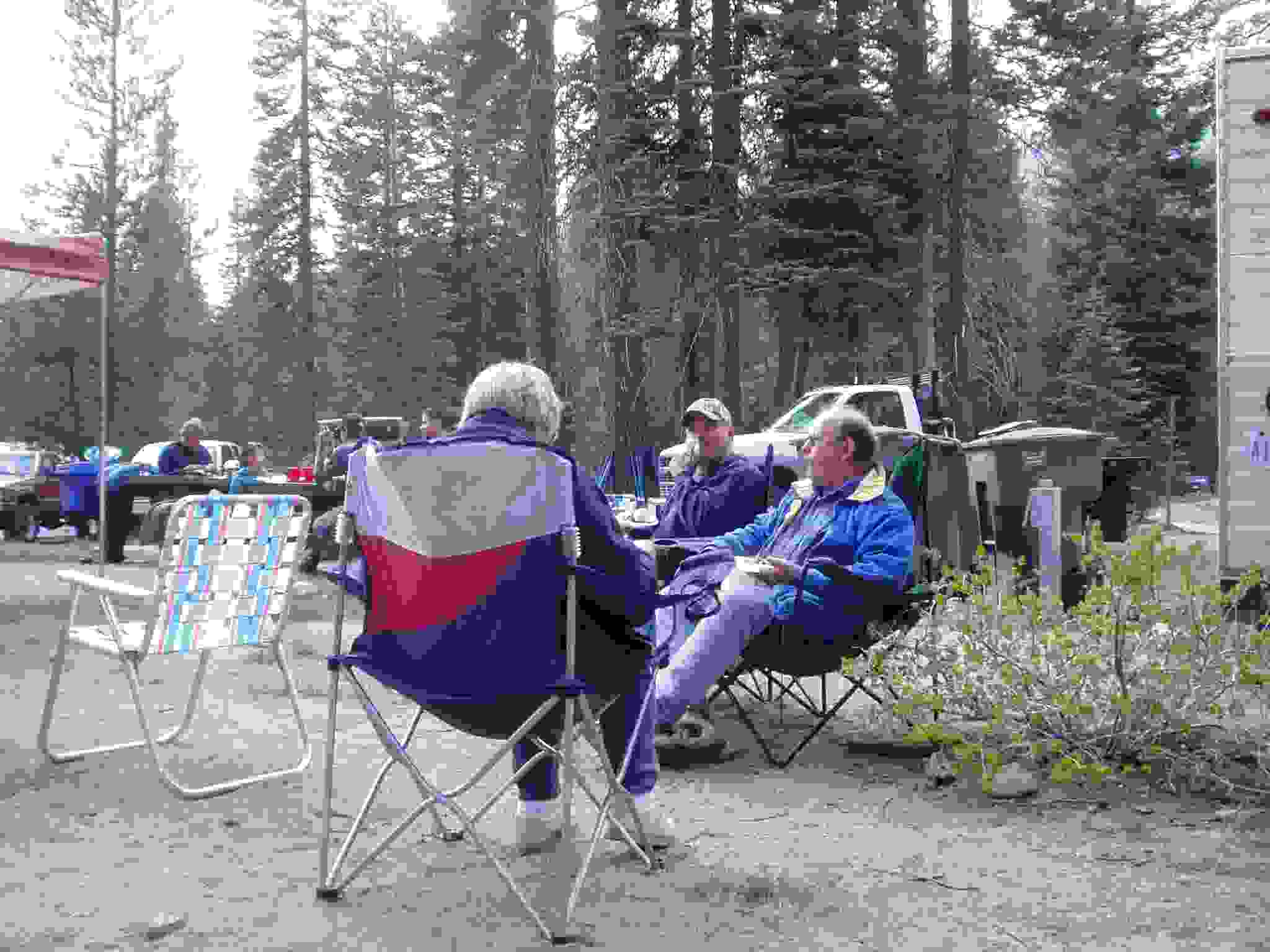 Linda and others around the morning fire.